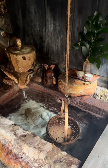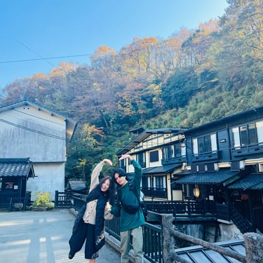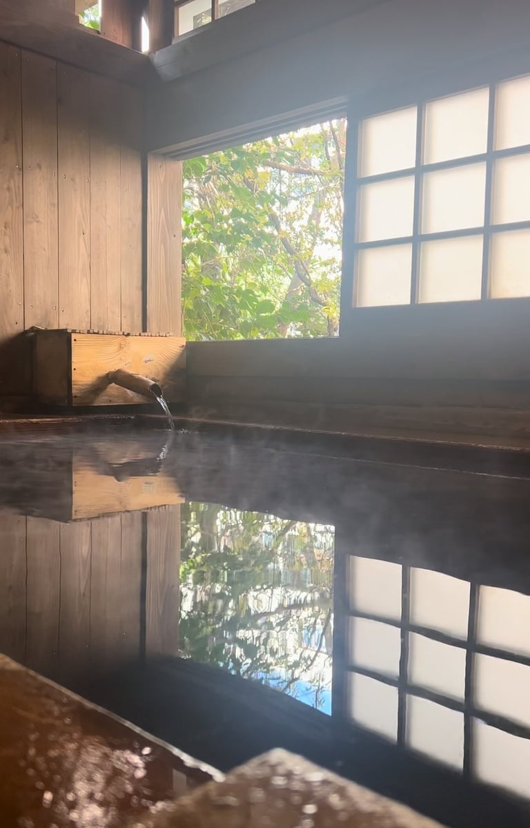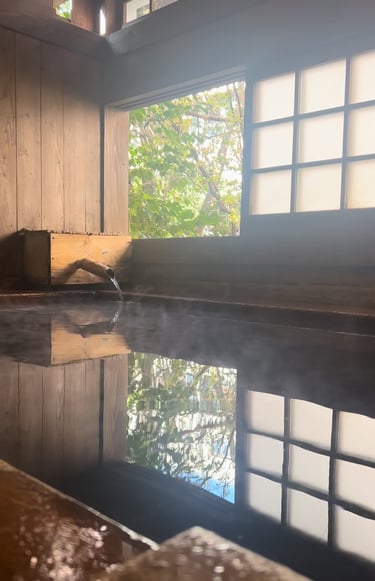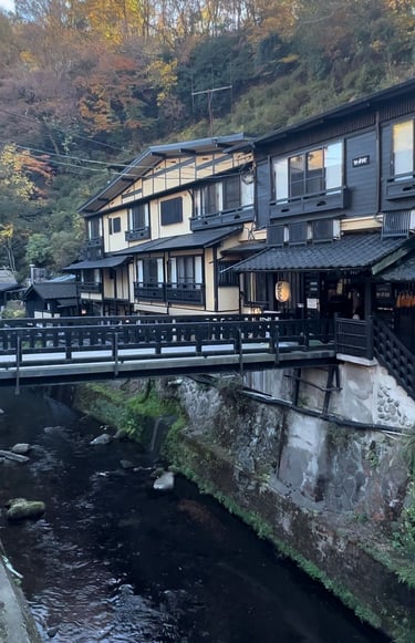 As we approached the town, we couldn't help but be captivated by its charm and tranquility. Once we arrived, we were greeted by the sight of numerous onsen bath houses scattered throughout the town. It was a tough decision to choose which ones to visit, but luckily, we discovered that there was a pass available for purchase. This pass allowed us to enjoy three different onsen of our choice. Since we were not comfortable with public bathing, we decided to opt for private baths instead.